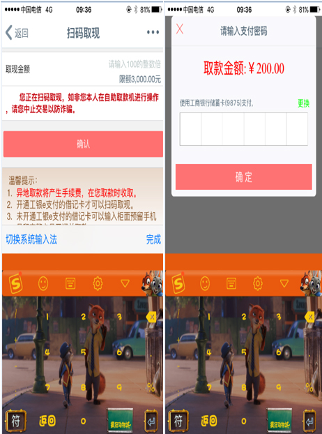 2、第二步:使用手机银行“扫一扫”功能扫描二维码,输入取款金额,使用认证介质认证。
