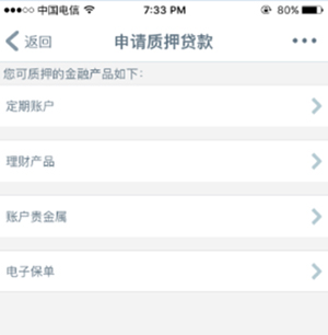 2、点击后出现申请贷款菜单,选择质押贷款按钮