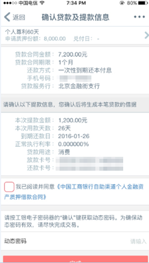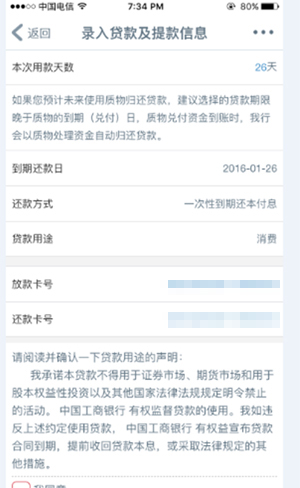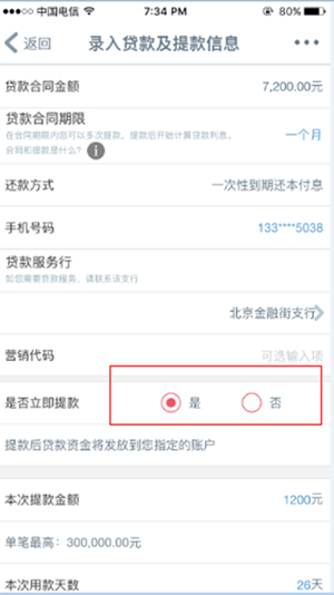 8、选择“是”后 需要录入放款卡号和还款卡号,以及用款天数和本次提款金额,勾选同意后,点击确认
