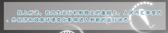 我们认为,当前的人民币汇率变的是运行状态,不变的是运行逻辑;变的是看待内外均衡的新视角,不变的是认识运行规律的方法论;变的是市场博弈的新风格,不变的是两条底线的决定力。年初以来,人民币汇率运行轨迹的不断变化不是汇率内生机制的调整,而是经济环境变化所带来的运行状态转换:1月至5月中旬,人民币对一篮子货币总体升值;5月中旬至6月下旬,强势美元所引发的其他货币贬值主导了人民币走势;6月下旬至7月底,内、外基本面发生相对变化带动人民币汇率中枢上移。在新的运行状态下,人民币兑美元汇率呈现出四个新特征:运行中枢上移,高估基本消失;波动区间加大,汇率弹性进一步凸显;市场与央行认识趋近,单向预期并未占据主导;状态稳定性随汇率水平而变化,市场情绪在关键心理点位可能裂变。