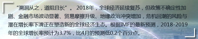 根据IMF的最新预测,2018-2019年的全球增长率预计为3.7%,比4月的预测低0.2个百分点。考虑到部分前瞻性指标已现疲态、全球增长的下行风险上升,我们认为,2019年全球经济经济增速或略低于2018年。